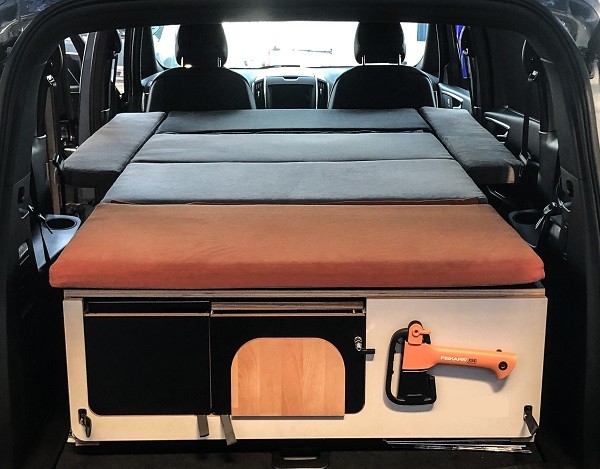 - die Hauptschublade mit Raum für Kocher, Wasser und Kühlbox, Maße: 990 x 545 x 320 mm