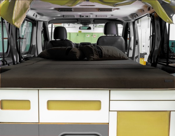 - Matratze in Farbe 57: besteht aus Klappteilen, die aus einem dreischichtigen PPUR sandwichartigen System hergestellt sind