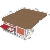 - die Hauptschublade mit Raum für Kocher, Wasser und Kühlbox. Zwei kleinere Schubladen für Küchenzubehör und eine Schublade mit Messer und Arbeitsfläche.