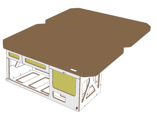 - Matratze in Farbe 104: besteht aus Klappteilen, die aus einem dreischichtigen PPUR sandwichartigen Kompositsystem hergestellt sind und über