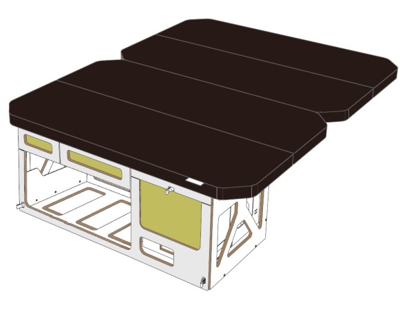 - Matratze in Farbe 57: besteht aus Klappteilen, die aus einem dreischichtigen PPUR sandwichartigen Kompositsystem hergestellt sind und über