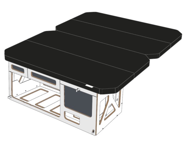 - Matratze in Farbe 15: besteht aus Klappteilen, die aus einem dreischichtigen PPUR sandwichartigen Kompositsystem hergestellt sind und über