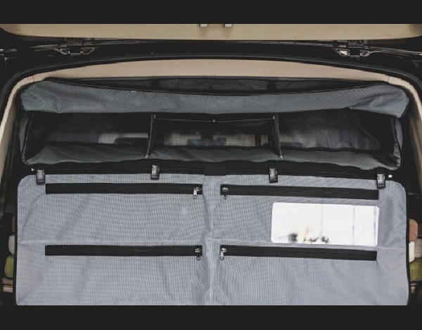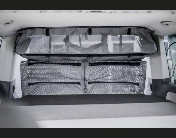 Il sacco è ancorato alla struttura del soffitto del veicolo tramite viti e un telaio in alluminio inserito all'interno del sacco.