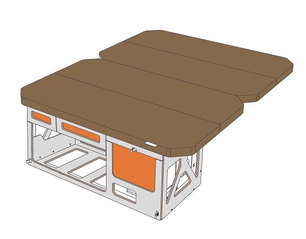 - Matratze in Farbe 104: besteht aus Klappteilen, die aus einem dreischichtigen PPUR sandwichartigen Kompositsystem hergestellt sind und über