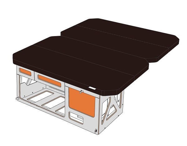 - Matratze in Farbe 57: besteht aus Klappteilen, die aus einem dreischichtigen PPUR sandwichartigen Kompositsystem hergestellt sind und über