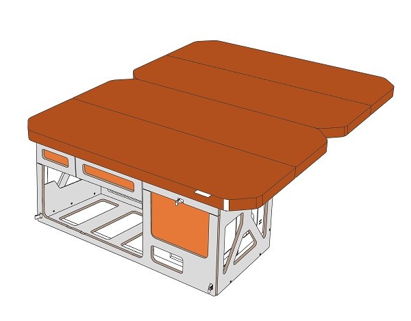 - Matratze in Farbe 62: besteht aus Klappteilen, die aus einem dreischichtigen PPUR sandwichartigen Kompositsystem hergestellt sind und über