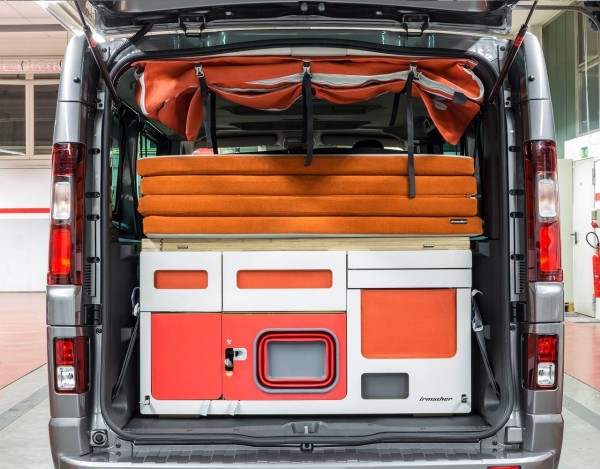 - die Hauptschublade mit Raum für Kocher, Wasser und Kühlbox. Zwei kleinere Schubladen für Küchenzubehör und eine Schublade mit Messer und Arbeitsfläche.