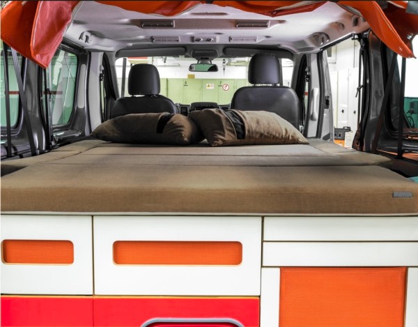 - Matratze in Farbe 69: besteht aus Klappteilen, die aus einem dreischichtigen PPUR sandwichartigen Kompositsystem hergestellt sind
