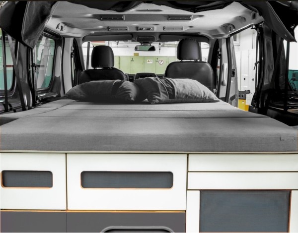 - Matratze in Farbe 112: besteht aus Klappteilen, die aus einem dreischichtigen PPUR sandwichartigen Kompositsystem hergestellt sind