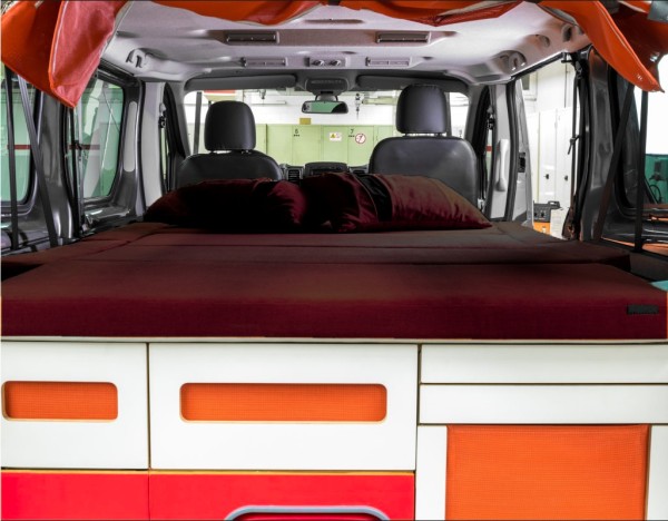- Matratze in Farbe 69: besteht aus Klappteilen, die aus einem dreischichtigen PPUR sandwichartigen Kompositsystem hergestellt sind