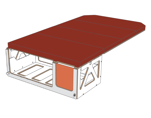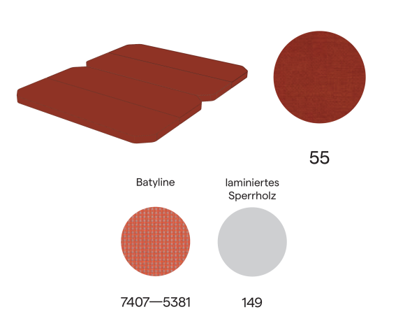 - Matratze in Farbe 55: besteht aus Klappteilen, die aus einem dreischichtigen PPUR sandwichartigen System hergestellt sind