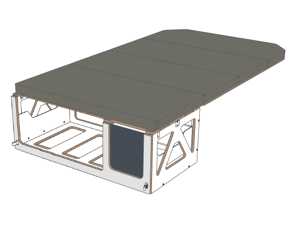 - Matratze in Farbe 69: besteht aus Klappteilen, die aus einem dreischichtigen PPUR sandwichartigen System hergestellt sind