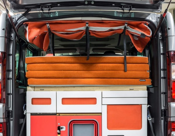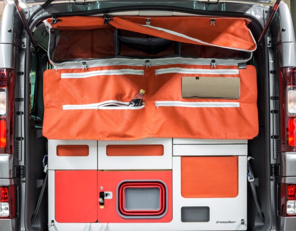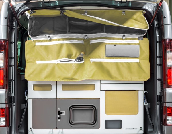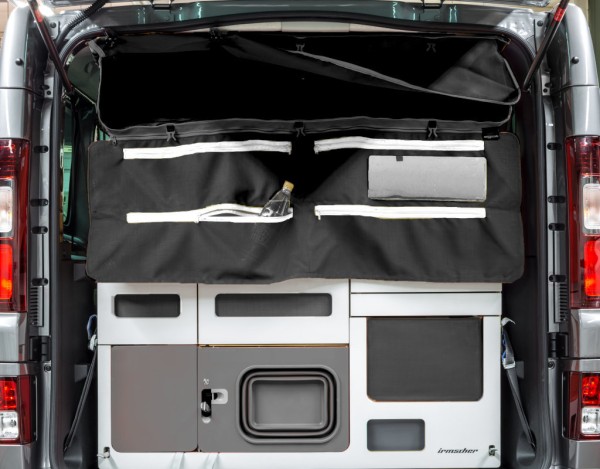 Die Tasche ist mit Hilfe von Schrauben über einen eingeschobenen Aluminiumrahmen im Inneren der Tasche in der Konstruktion der Fahrzeugdecke verankert.